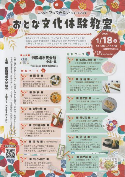 2026年1月18日(日)、御殿場市民会館にて「おとな文化体験教室」が開催されます。